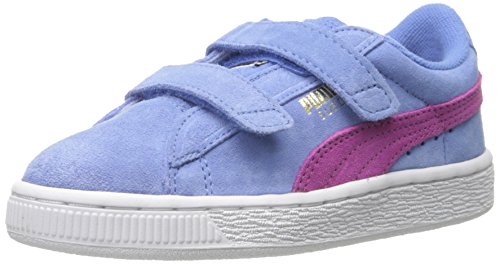 Born in 1968, the Suede was a warm-up shoe made infamous by athletic greats such as basketball's Walt "Clyde" Frazier and the track's Tommie Smith. It hit new levels of fame during the '80s dawn of b-boys and hip hop beats, and, to this day, it remains PUMA's most epic icon of sport-inspired style with its smooth suede and streetwise swagger. Here, we've traded its laces for easy-on straps and shrunken it down for young legends in the making.Feature