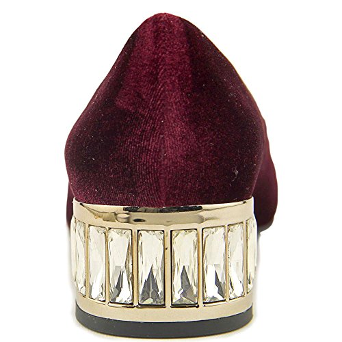 Product DescriptionDetailed dress pump with crystal embedded mid-block heel and velvet upper0