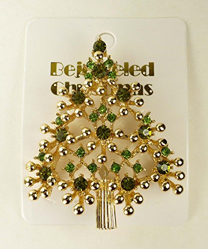 -. Binding : Jewelry -. Brand : Bejeweled Christmas -. Color : Green -. Department : womens -. Feature : Pin back with safety C clasp. / About 2 1/8 inches long top to bottom / Made in China / Goldtone alloy with light and dark green Austrian metal-backed rhinestones / Pin is neatly wrapped in pretty tissue and includes gift box -. Label : Bejeweled Christmas -. Manufacturer : Bejeweled Christmas -. Model : 2018G -. MPN : 2018G -. PartNumber : 2018G -. ProductGroup : Jewelry -. ProductTypeName : FASHIONOTHER -. Publisher : Bejeweled Christmas -. Studio : Bejeweled Christmas -. Title : Bejeweled Christmas Large Green Rhinestone Tree Pin 2018G