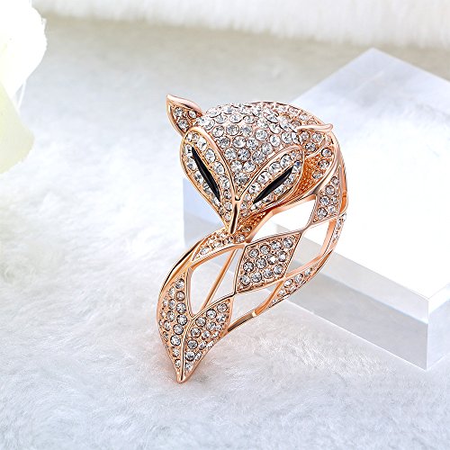 -. Title : Kemstone Rose Gold Crystals Accented Fox Brooch Pin for Women