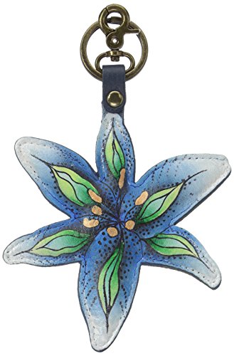Anuschka Handpainted Leather Keyring/Charm Luscious Lilies Denim