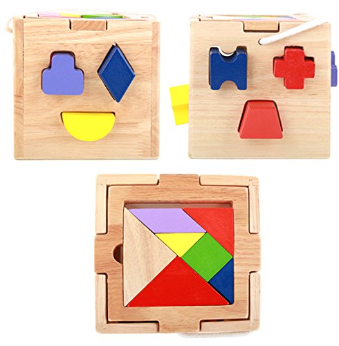 Beautifully constructed wooden toy with 12 brightly colored, easy-to-grip shape blocks. The lid can play as a Tangrams puzzle separately.