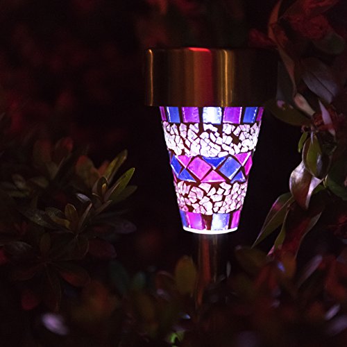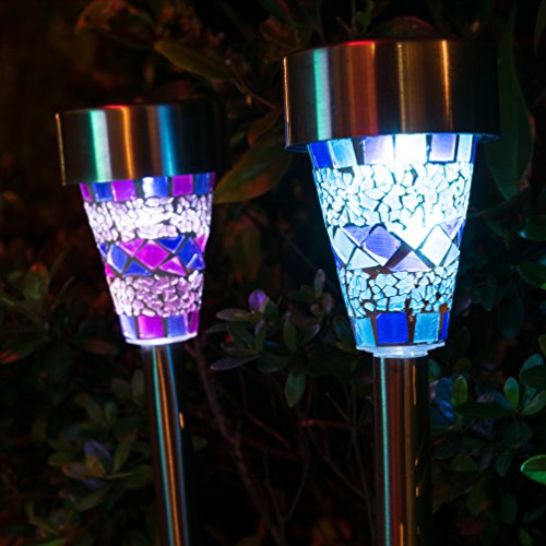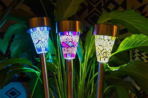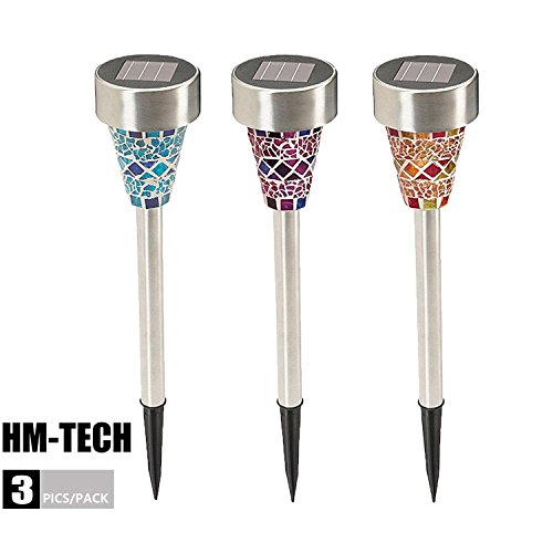 HM-TECH Solar Outdoor Garden Lights Led Path Landscape Lighting Solar Pathway Lights for Lawn Patio Yard Walkway (Stainless Steel) (mosaic)