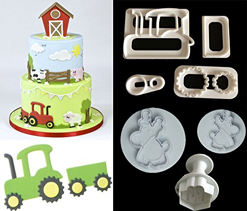 (Set of 7)The Easiest Farm Cookie Cutter Set,4 × Tractor,2 × Cow ,1 × Gift,CupCake Decorating Gumpaste Fondant Mould