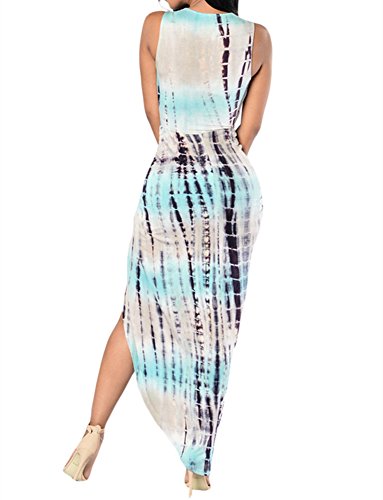 Cfanny Women's Sexy V Neck Sleeveless Tie-Dye Maxi Dress,Bluish,Medium