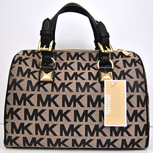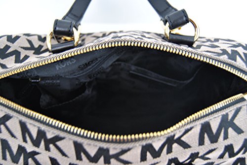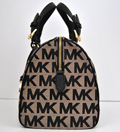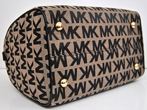 Michael Kors Grayson medium satchel and crossbody. Protective 4 metal feet. Signature jacquard fabric with leather trim.