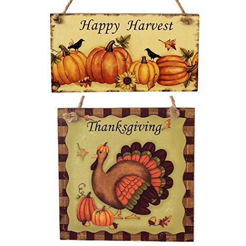 Thanksging Plaque , Coxeer 2Pcs Thanksgiving Hanging Plaque Decorative Wooden Turkey Wall Hangings Board Thanksgiving Door Bar School Shop Decor (2 PCS Thanksgiving Hanging Plaque)