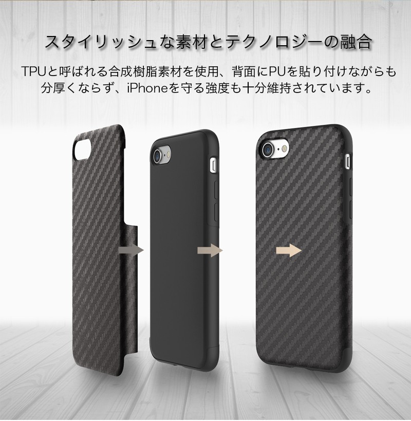 ★「対応機種」iPhone8(アイフォン8)、iPhone8Plus(アイフォン8 プラス)、iPhone7(アイフォン7)、iPhone7 Plus(アイフォン7 プラス)★「カラー」ブラウン、ブラック(黒)、ブルー(青)、シルバー(銀)★「商品特徴」カーボンファイバーのような独特の素材感の合皮とTPUを融合させたケース。TPUと呼ばれる合成樹脂素材を使用、背面にPUを貼り付けながらも分厚くならず、iPhoneを守る強度も十分維持されています。弾力性が有りながら非常に丈夫なTPU製、外部からの軽度な衝撃を吸収する効果もあります。ケース背面に同梱のメタルプレートを貼り付ければ、マグネットタイプのカーマウントやスタンド等を使用することができます。★「キーワード」アイホン8 / アイホン8プラス アイホン7 / アイホン7プラス ケース クリア 耐衝撃 カバー オシャレ TPU素材 軽量 薄型 衝撃吸収 マグネットカーマウント対応 耐久性の高い設計 高い保護力