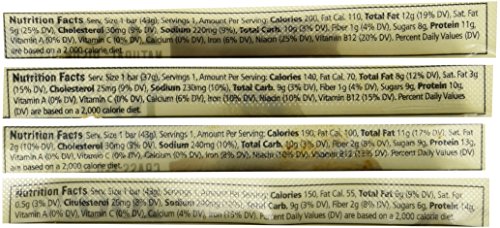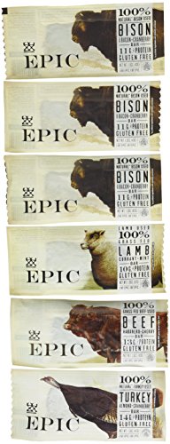-. Feature : 6 Bison Bacon Cranberry, 2 Beef Habanero Cherry, 2 Lamb Currant Mint, 2 Turkey Almond Cranberry / The EPIC bar is a 100% grass fed animal based protein bar / Nutrient Dense- Gluten Free, Soy Free and Dairy Free / Total Fat: [lamb] 8 g, [turkey] 6 g, [beef] 11 g, [bison] 12 g / Cholesterol: [lamb] 25 mg, [turkey] 20 mg, [beef] 30 mg, [bison] 30 mg