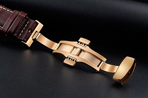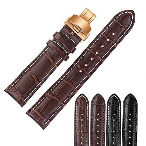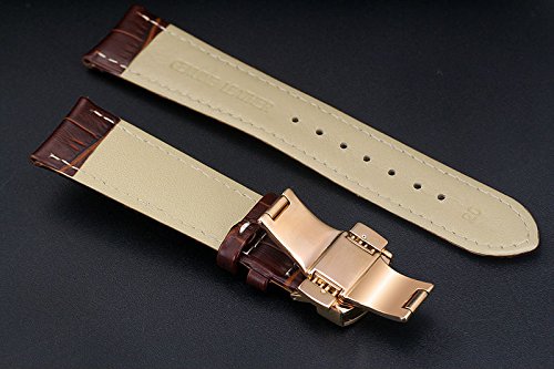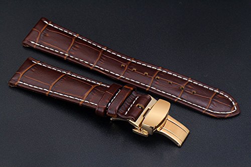 -. Title : 23mm Brown Luxury Replacement Leather Watch Straps/Bands Handmade with White Contrast Stitching for High-end Watches with Rose Gold Deployment Clasp