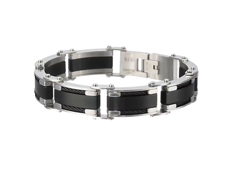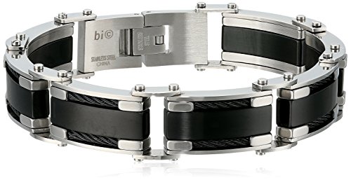 Men's Stainless Steel Cable with Black IP Link Bracelet