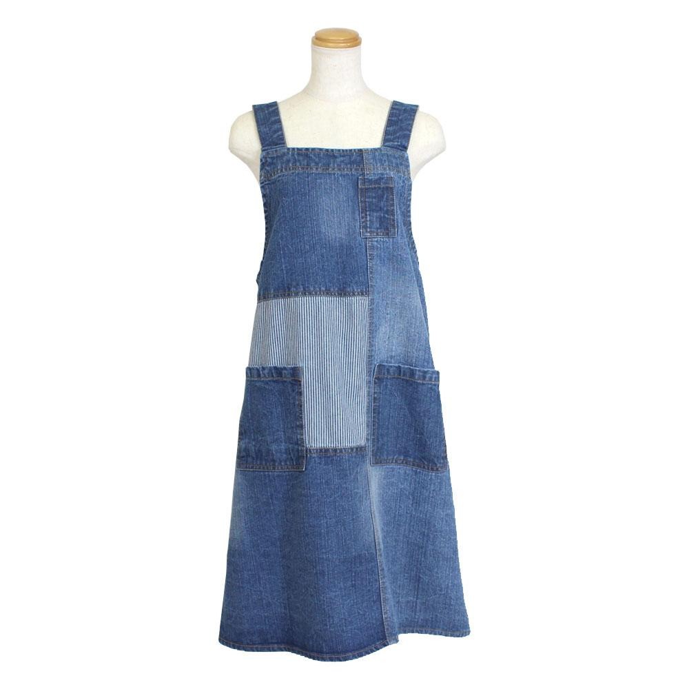 色合いの違うデニム生地をパッチワークで仕上げたおしゃれなエプロンです。