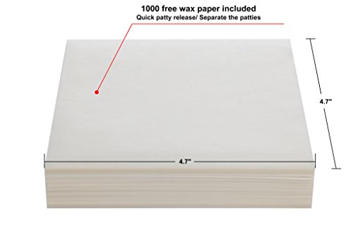 - 1000 PIECES FDA APPROVED WAX PAPER INCLUDED:BIG BONUS! Free 1000 pieces of4.7 x 4.7inch premium wax paper to separate the patties to prevent them from sticking, breaking and ruining. You don't need to buy them extra, save your time and money, and can be used for a very long time