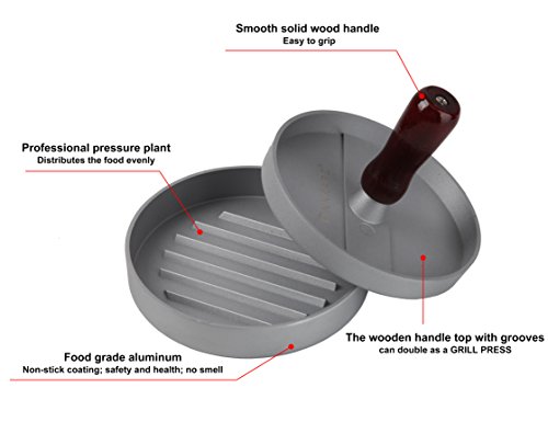 - FOOD-GRADE ALUMINUM: Heavy-dutyaluminum burger press with non-stick coating much more healthy and sturdy than silicone molds or plastic molds; Safe and no smell