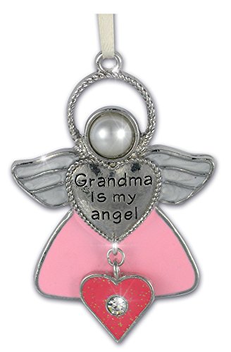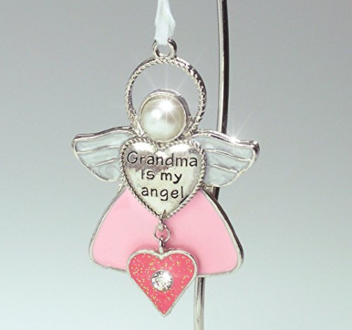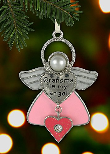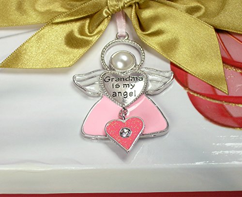 Grandma Angel - Grandma is my Angel Christmas Ornament with Pink Heart Charm - Grandmother Gifts