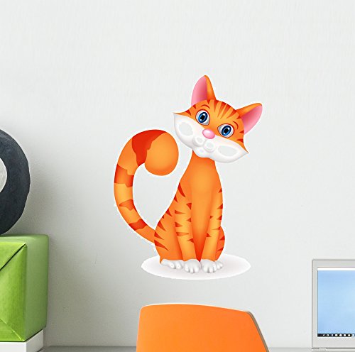 Cat Cartoon Chartacter Wall Decal by Wallmonkeys Peel and Stick Graphic (12 in H x 9 in W) WM343967
