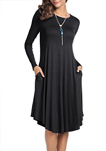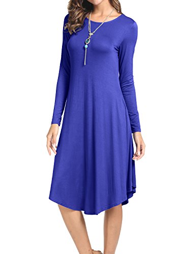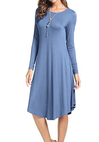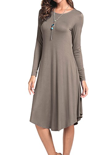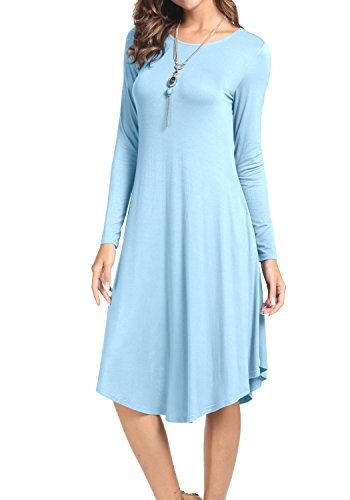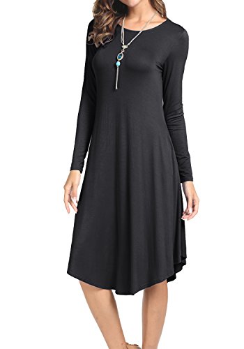 Levaca Women's Fall Plain O Neck Pockets Swing Loose Casual Midi Dress, in any single wear, or as a basic shirts,Have a good show in all seasons.