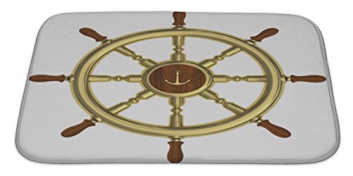 Gear New Golden Nautical Wheel Isolated on White Bath Rug Mat No Slip Microfiber Memory Foam