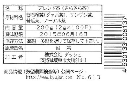 -. Feature : Contents: 200g (2gX100P) / Ingredients: Ban pomegranate tea (guava tea), haw / Product Size (height X depth X width): 300mmX90mm