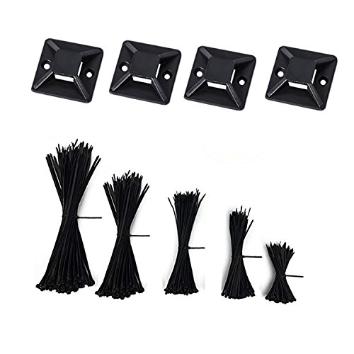 Nylon Zip Cable ties 4 6 8 10 12 Inches - 500pcs with Zip Tie Self Adhesive Cable Tie Mounts 50 pcs