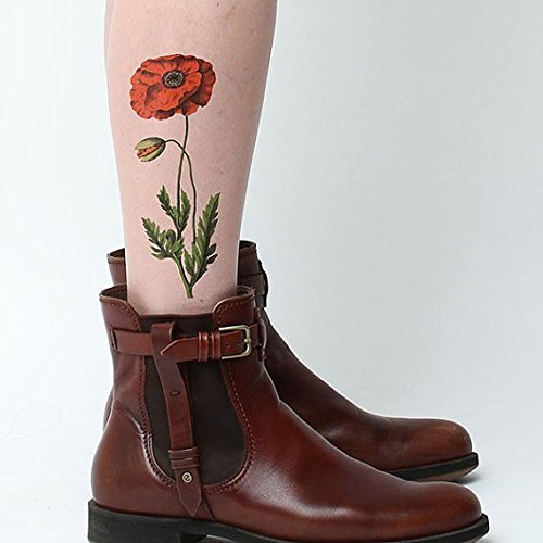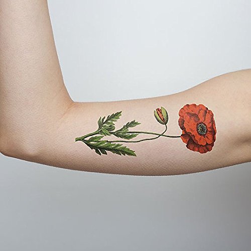 Tattify Poppy Flower Temporary Tattoo - Poppy Lock and Drop It (Set of 2) - Other Styles Available and Fashionable Temporary Tattoos