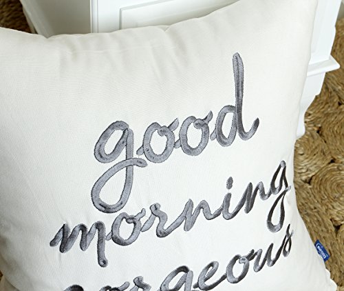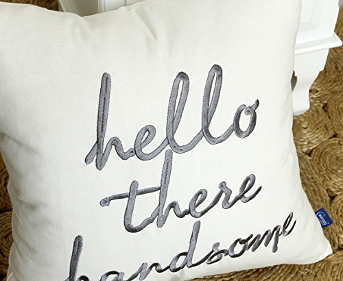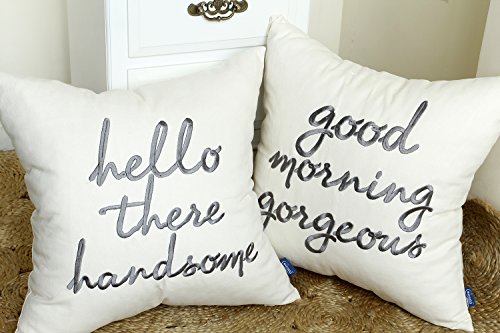 DecorHouzz Pillowcases Hi Handsome Good Morning Gorgeous Set of 2 Embroidered Pillow Cover Cushion Cover Throw Pillow Decorative Pillow Wedding Couple He and She Anniversary Gift 18"X18" (Ivory)