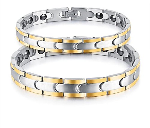 -. Feature : ゲルマニウム磁石が入れております。ゲルマニウムは細胞内への酸素供給の促進効果、清血効果、マイナスイオン効果、痛みの緩和作用、血液循環の改善、免疫強化および自然治癒力の回復、睡眠の改善、輻射防止など様々な効用を持ちます。男女兼用のシンプルデザインで、お体の健康とおしゃれが両立できます。 / 商品をちゃんと収納できるように、収納ポーチを提供いたします。(男女各1個) もちろん、プレゼントとする時にも、余計な包装もいらなく、このまま渡すのもよいです。 / ブレスレットの長さ:215mm(メンズ) 200cm(レディース) / 幅:10mm(メンズ);8mm(レディース)重量 : 男性/約42G 女性/約30G / 素材はサージカルステンレス 316Lです。サージカルステンレスは医療用の器材などに使われてます。ゴールドやシルバーと違い、サビにくく、腐食・酸化・高熱に強い素材です。高い硬度を誇り、金属本来の美しい輝きを保ち続けることが可能です。金属アレルギーの方でもつけやすく、メンテナンスもほとんど必要がないので、ジュエリーやアクセサリー業界で現在もっとも注目されている素材です。