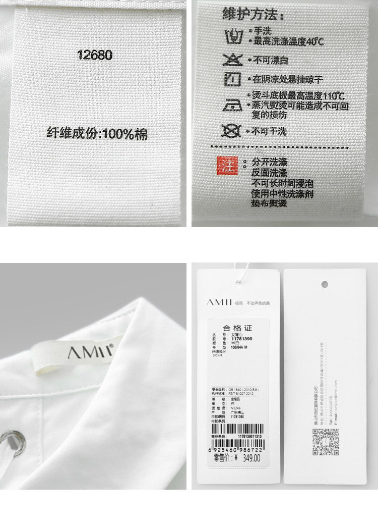 | 洗涤标准: | 不可浸泡不可漂白110℃以下垫布熨烫悬挂晾干40℃以下手洗不可干洗 |