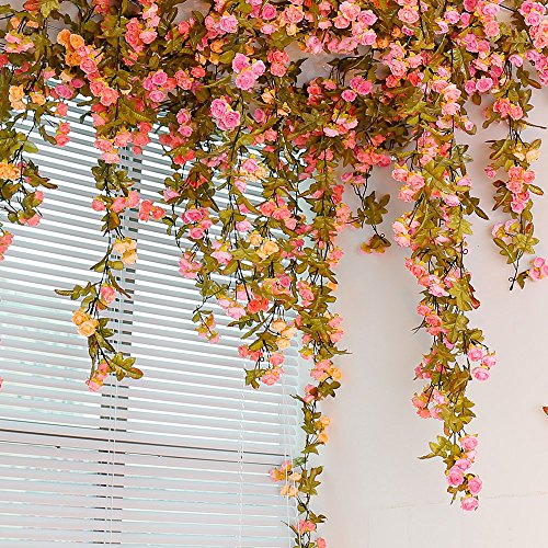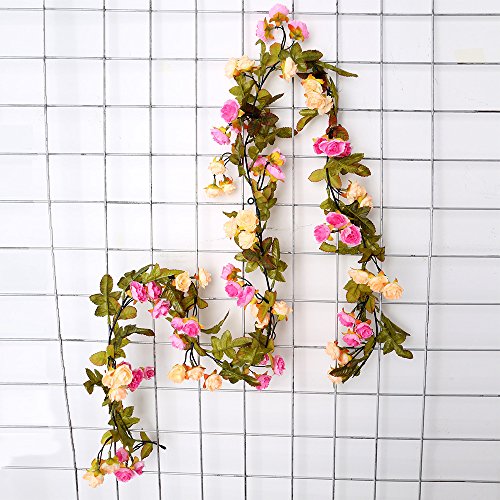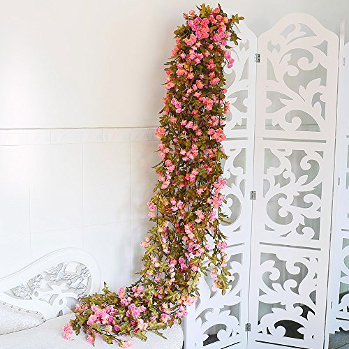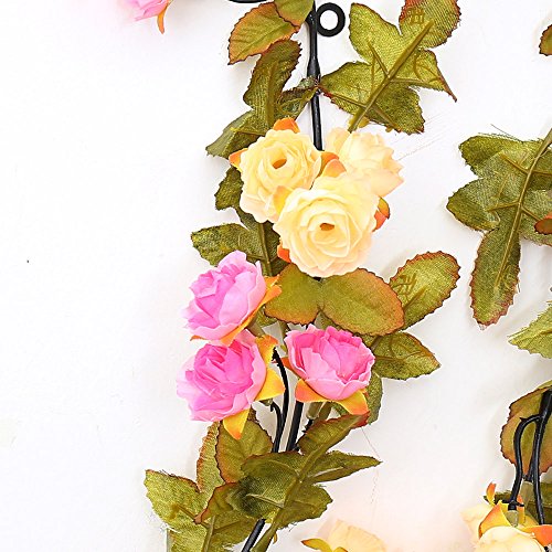 Yiliyajia Artificial Flower looks quite realistic, no colour difference appears. Live forever ,no fragile no need maintain like a real flower. The vines is quite flexible and no break off easily, you can make it any shape you like. Flowers and leaves are shakeproof wonnt be crumbled, without deformation, easy storage, packaging and transportation. The leafs and flowers can be picked off and put it back by a buckle design. Just need a electric fans to clean it if there is dust. Regular dusting and cleaning is recommended to maintain a fresh appearance. There may be plastic smell the first time you open the package,it will dissipate soon. Poison free and innocuous for indoor use Please don't put artificial plants expose under the sun for a long time, or they will lose their bright colors and became increasingly bleak Please don't long time keeping the artificial plants in the water, especially hot water, or flowers will fade These artificial flowers will add a beautiful decor to any home, office or for special occasions like weddings, showers, party etc. DIY your house, add a touch of color and romance to your home with these beautiful Vine leaves, order now....Feature