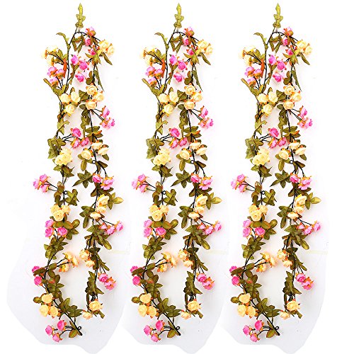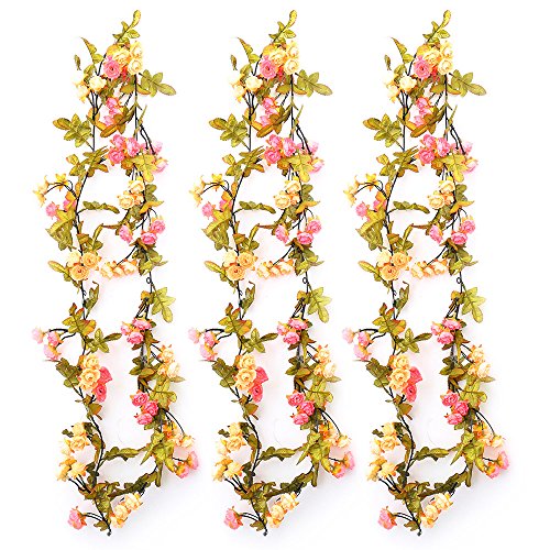 Pack of 3 Artificial Rose Vines Material: rayon flowers and plastic rattan