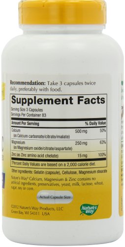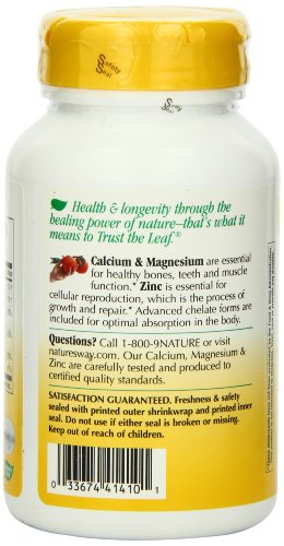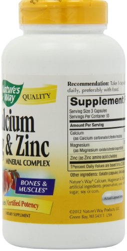 -. Binding : Health and Beauty -. Brand : Nature's Way -. Label : NATURE'S WAY -. Manufacturer : NATURE'S WAY -. PackageQuantity : 1 -. ProductGroup : Health and Beauty -. ProductTypeName : HEALTH_PERSONAL_CARE -. Publisher : NATURE'S WAY -. Studio : NATURE'S WAY -. Title : Nature's Way Calcium Magnesium & Zinc