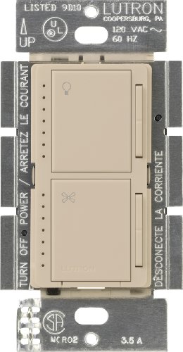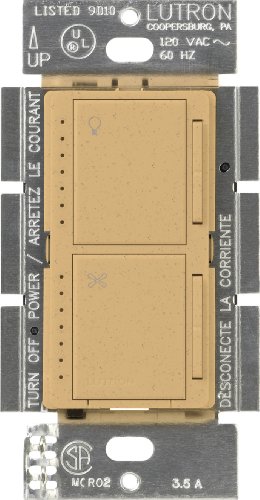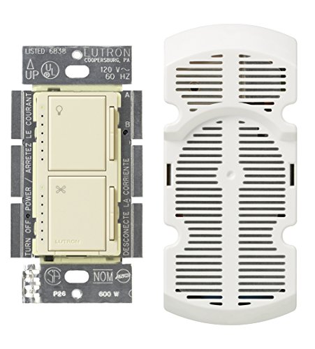 Lutron MA-LFQM-LA Maestro-Light Almond collection 1Amp Ceiling Fan Control in Light Almond. This item is 4.69"H x 2.94"W. The voltage is 120 volts. Additional Information: Accessory-fan mounted canopy module.