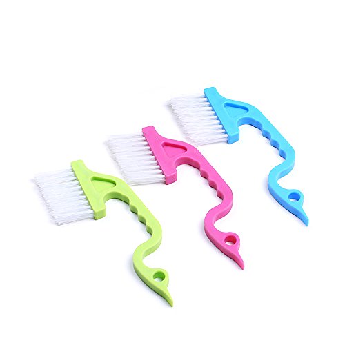 WEISIPU 3 Pieces Cleaning Brushes&Door Window Track/Kitchen Groove Gap/Hand-held Door/Kitchen Corner Cleaning Tools, Blue, Green and Rose