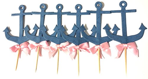 - 12pack Pink Nautical Theme Cupcake Decorations Toppers