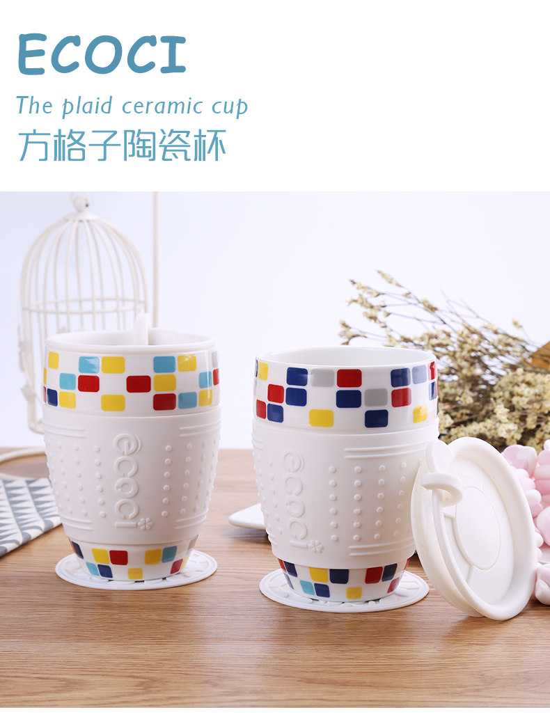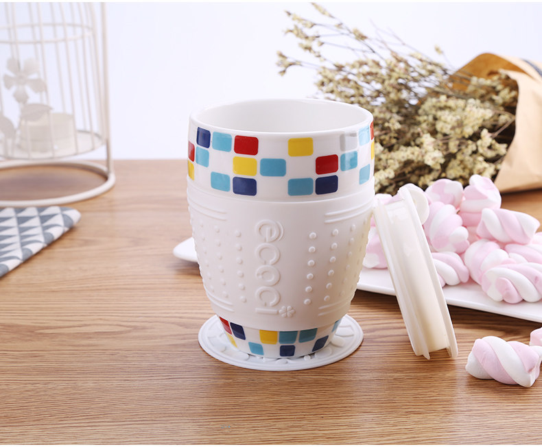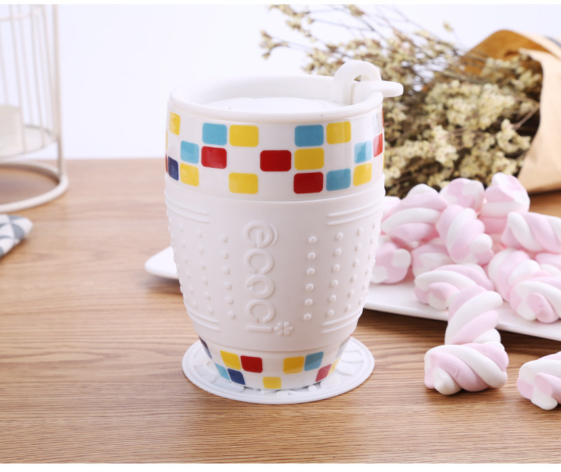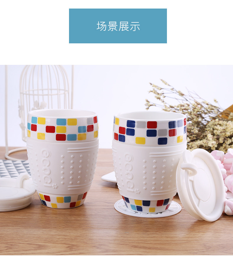创意陶瓷马克杯个性潮流情侣咖啡杯大容量带盖硅胶办公室喝水杯子