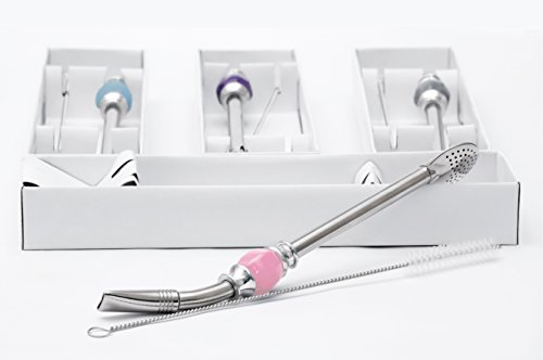 PremiumDesign Bombilla Straws, Great for Yerba Mate, Loose Tea, Ground Coffee. 21cm Long, Silver (Pink)