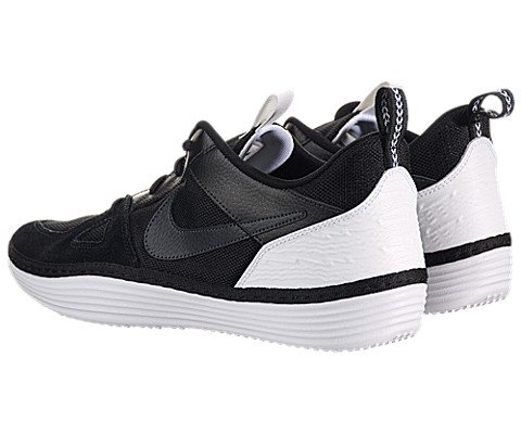 • Dual-durometer midsole/outsole provides a soft, pliable Nike Solarsoft foam midsole for cushioning and support