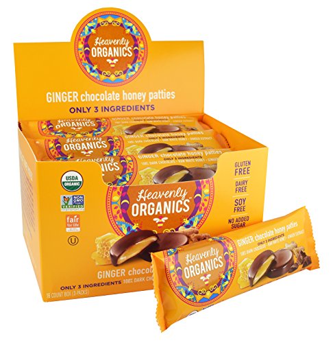 -. Title : Heavenly Organics Ginger Chocolate Honey Patties (16 Per Box) Made with 100% Organic Cocoa and 100% Organic Raw White Honey; Non-GMO, Fair Trade, Kosher, Dairy & Gluten Free, No Sugar Added