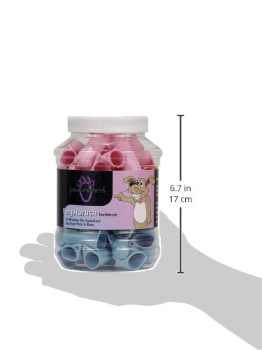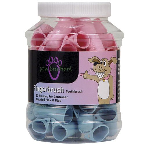 Paw Brothers Finger brush Toothbrushes are made with soft flex latex that conforms to your finger for a comfortable, secure fit. Softer bristles provide improved gentle massaging action. Finger brushes are easy to use and perfect for use with small dogs and puppies. Convenient canister of 50 assort pink and blue brushes.Feature