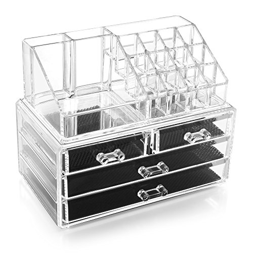 Stylish and functional two piece makeup organizer - use one complete unit or as a separate organizer and drawers