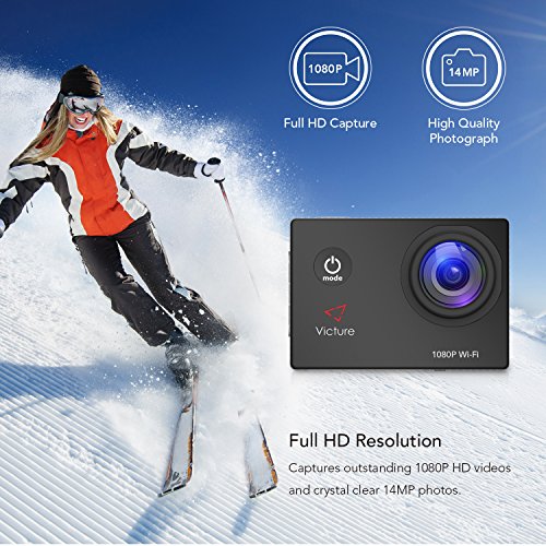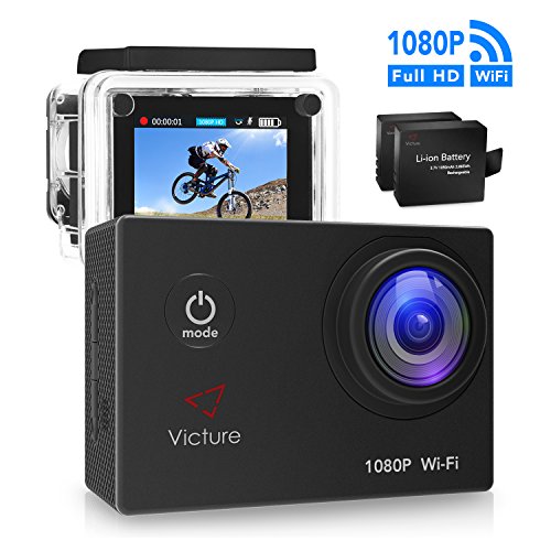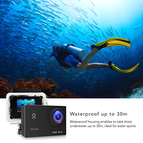 Victure Action Camera WIFI 14MP 1080P HD Waterproof Sports Camera 30M Underwater Diving Camera Action Cam 2 Inch LCD Screen 170° Wide Angle Lens with 2 Pcs Rechargeable Batteries and Accessories Kits
