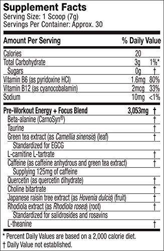 -. Feature : Providing explosive energy and intensity to power your workouts! Helps build more strength and enhance your performance. Formulated with ingredients including, CarnoSyn beta-alanine, quercetin, caffeine and L-carnitine. Green tea extract. Tastes great! / Build Strength and Enhance Performance / With Green Tea, L-Carnitine, Quercetin & More / Key Ingredient shown to boost strength in women