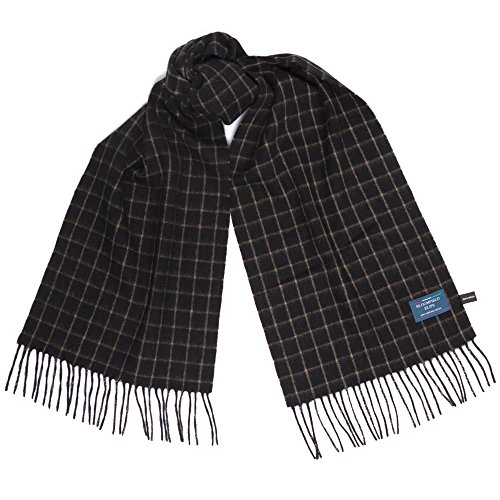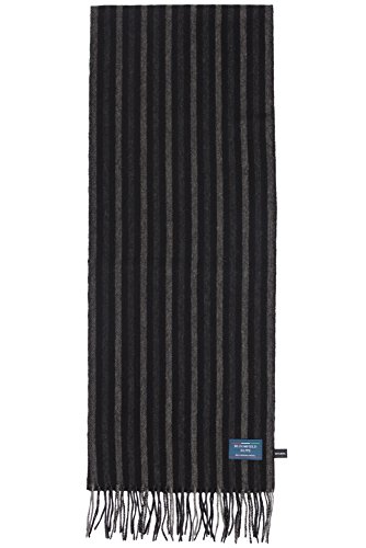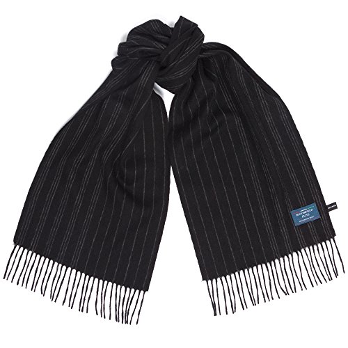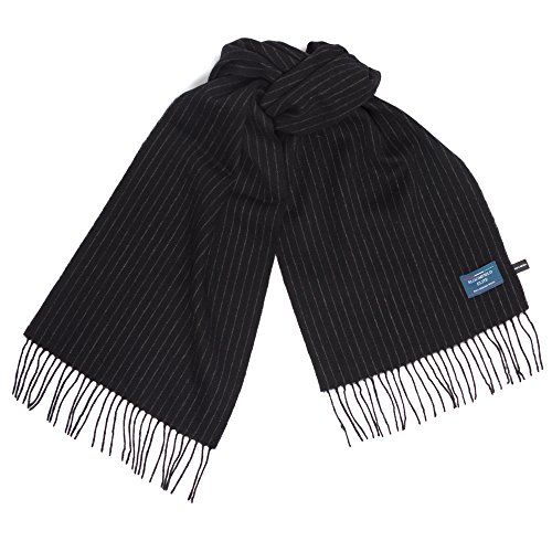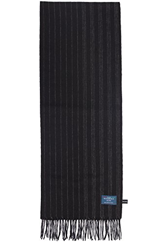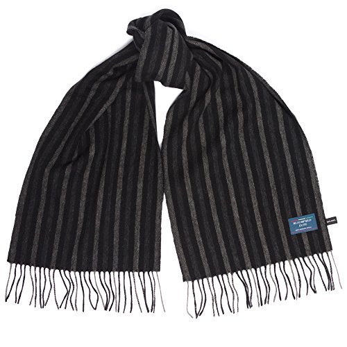 Binding : Apparel Product Description Bloomfield Elite Formal Black Grey Winter Warm Scarf. This model is in Grey Scale colors, perfect for formal funtions or business attire. The scarf is 67 In long, by 24.4 In wide. There are 3 in of tassles at each end making the total length 73 In. 0