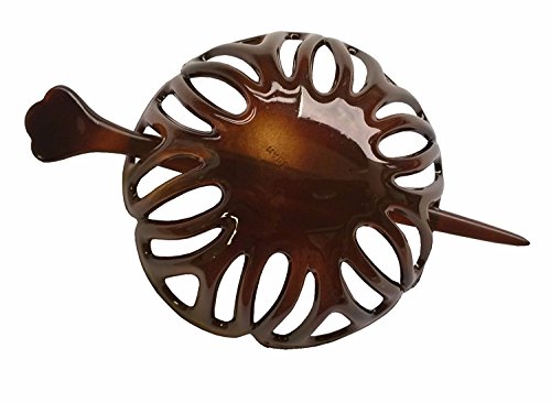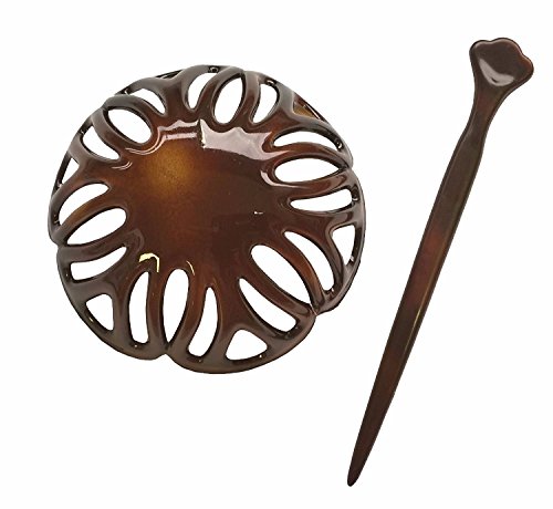 Parcelona French Radial Tortoise Shell Hair Bun Cover with Stick - 3.5 Inches Diameter