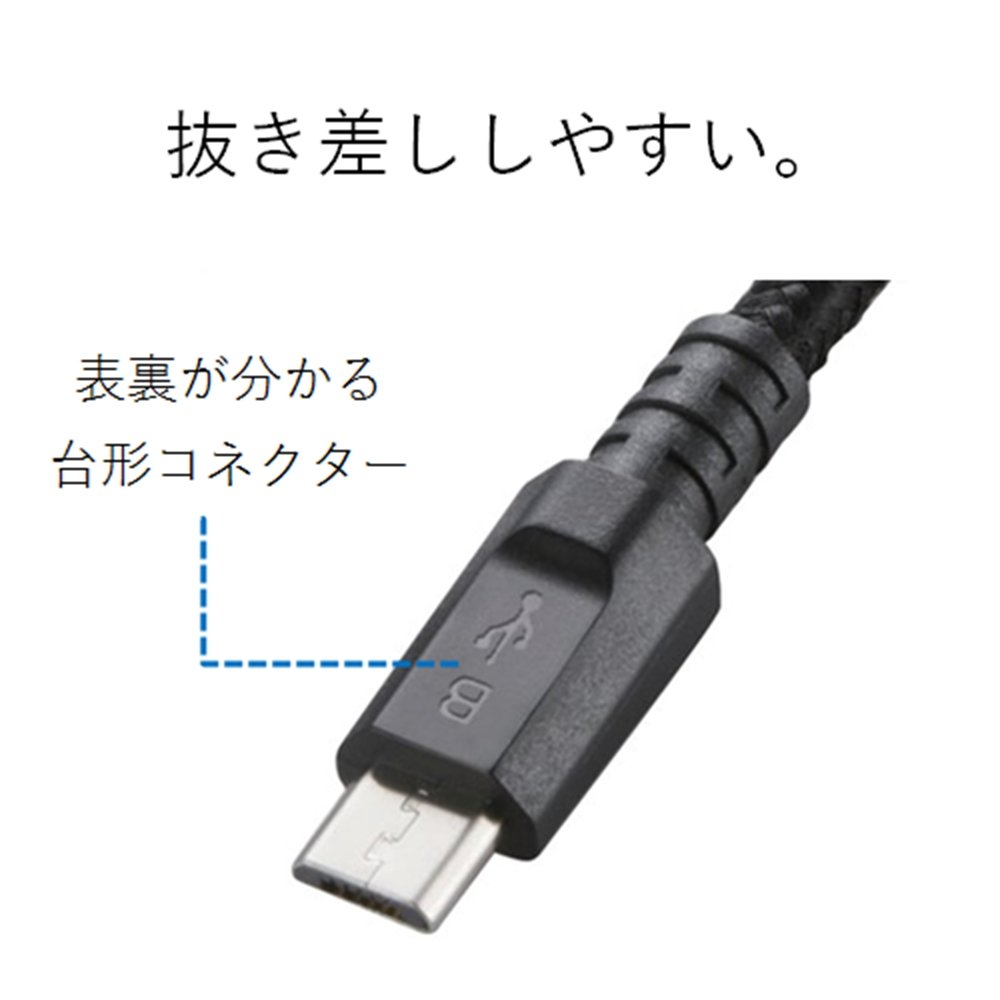 ■ The front and back are easy to understand, and a trapezoid microB connector easy to insert and remove is adopted.