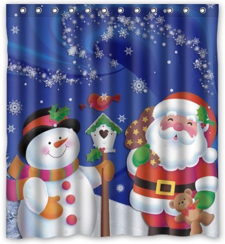 Unique Custom Merry Christmas Santa Claus and Snowman Waterproof fabric Polyester Shower Curtain 66"X72"-Bathroom Decor