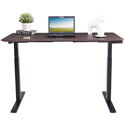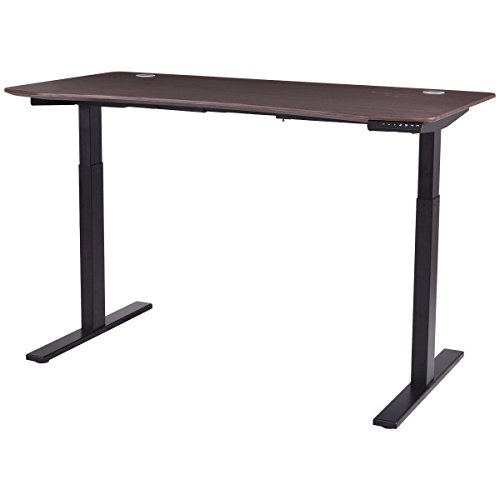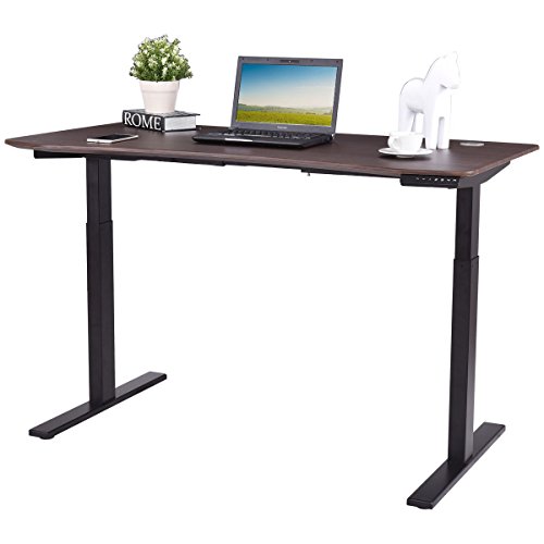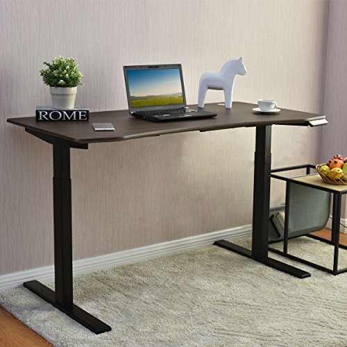 -. Feature : 【Ergonomics Design & Wide Application】You can adjust the height of the desk from 27.5" to 46.45", suitable for most adults. The desk reduces your neck or back pain since it offers better posture. There is a hole in the side of table top to make your cables organized. The desk works also perfect as writing table for children. When children grows up, you can adjust the height of desk, rather than buying new desk every year. / 【Spacious Tabletop & Stable】With a table top of 55.5x26", you have plenty of space for 2 monitors, paper works, books, coffee, plants and more. One level design makes the desk simple and modern. And the table is made of metal frame and thick MDF board, which is stable enough and provides large weight capacity(approx: 221lbs). / 【Lift System & Touch Control】The standing desk equips with 2 motors, it lifts or falls with 1" increments. Rapid and quiet. The desk comes with LED view screen, which tells accurate height and easy to operate. During busy day you touch the "﹀"/" "﹀"to customize desired heights in seconds, which is elegant and energy -saving. The desk comes with also memory function. / 【Installation & Easy to clean】The standing desk comes with electric metal frame and wood surface. Installation is not complicated. With paint finish it's rust-proof. The surface is anti-scratch and easy to clean with wet cloth. / 【Shipping & Customer service】Ups or usps will deliver the item to your house in 3-6 business days after you placed an order. We packed the standing desk as good as we can, if there is missing or damaged parts, please contact us first and offer us pictures of damaged part, we will solve the problem as the way you want(discount or replacement)