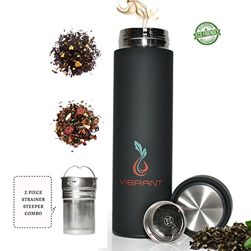 INDUSTRIES FIRST- Stainless Steel Vacuum Insulated Bottle with 2 PIECE STEEPER STRAINER MESH INFUSER. Allows you to Steep ICE COFFEE & ICE TEA. PREMIUM MATTE GRIP FINISH - Will not slip like other flask with a slippery finish, our powdered coded finish allow for the best grip.
