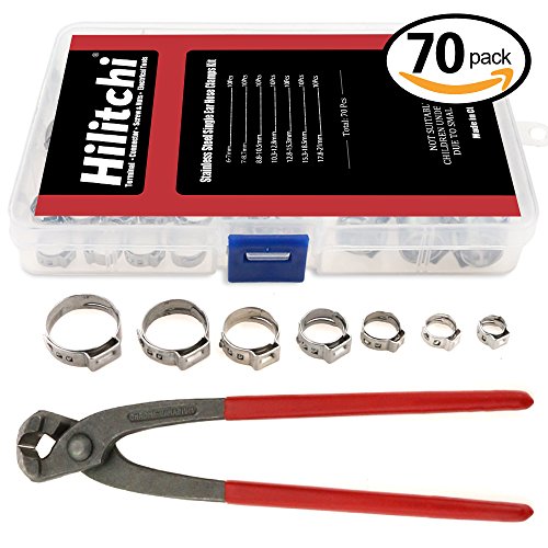 Hilitchi 70pcs Stainless Steel Single Ear Hose Clamps with Ear Clamp Pincers Kit