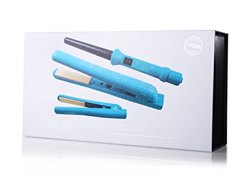 Herstyler Complete Flat Iron and Curling Iron Set, Dual Voltage, Blue